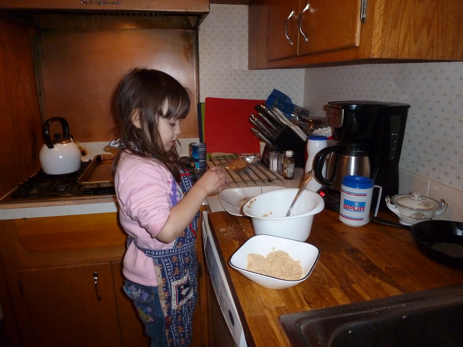 We both rolled, but O ended up doing most of them so I could take pictures. After rolling them you roll them in the crackers to coat them.